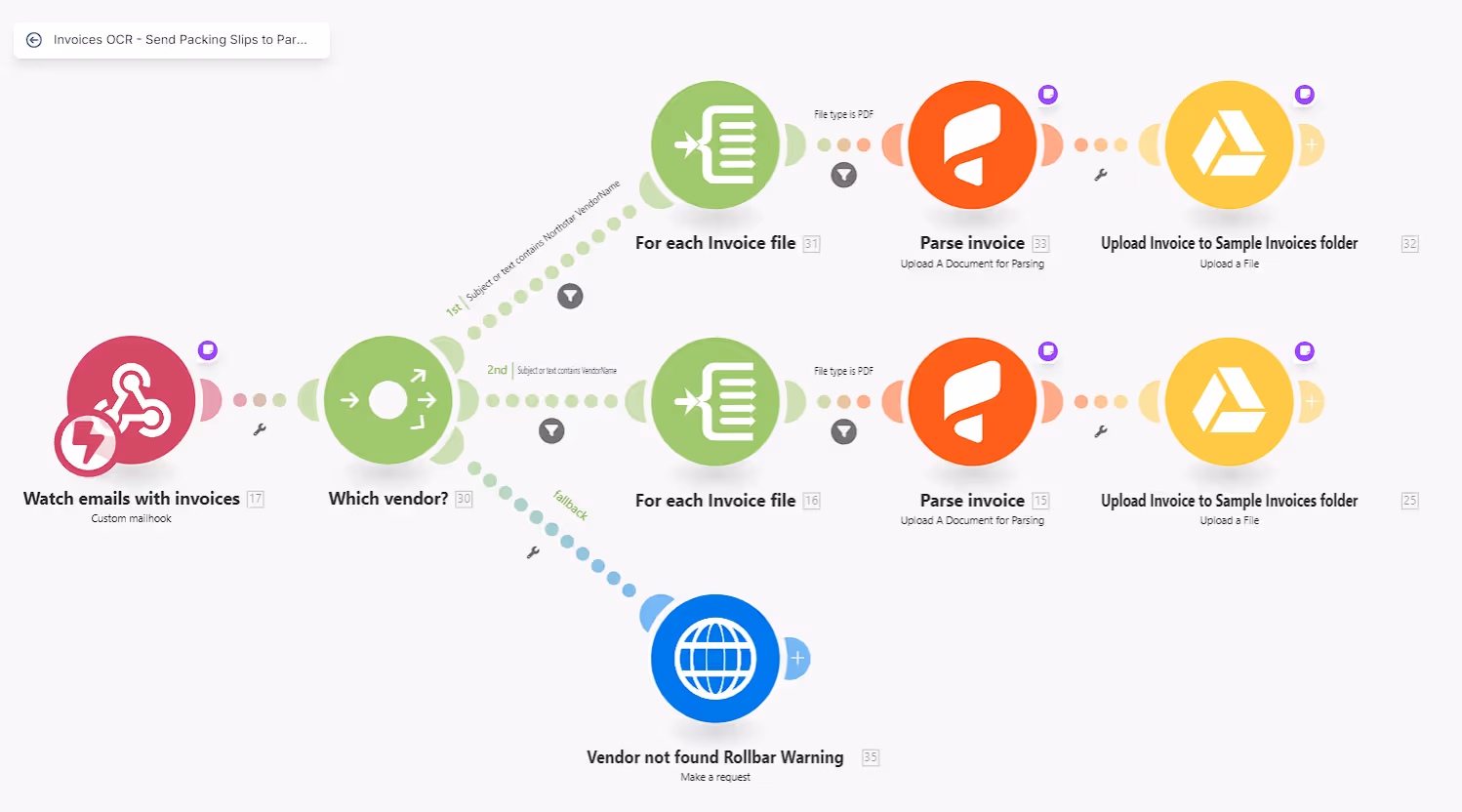 Let’s say you’re a manufacturer or distributor. Each week, vendors send dozens of PDF packing slips to your inbox. Normally, someone would: